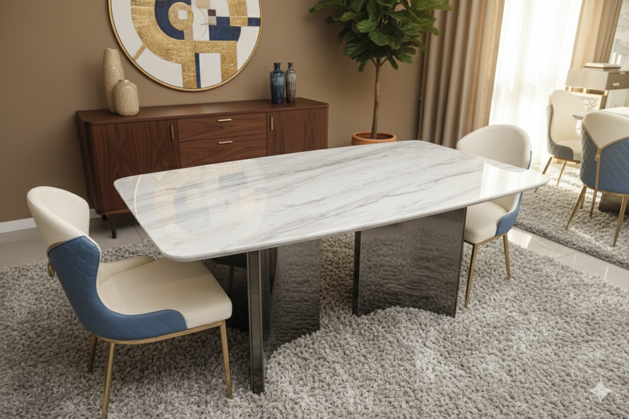 The epoxy coating forms a smooth, non-porous, and non-slip surface that effectively protects the marble from food stains and liquid spills — keeping your table looking pristine with minimal effort.