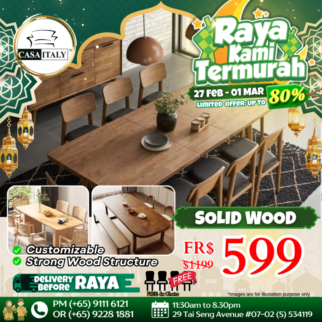 Celebrate Hari Raya in style with our biggest furniture sale of the year! From cozy sofas to elegant dining tables, comfortable beds, and spacious wardrobes, we’ve got everything to refresh your home. Place your order now to ensure delivery before Hari Raya.