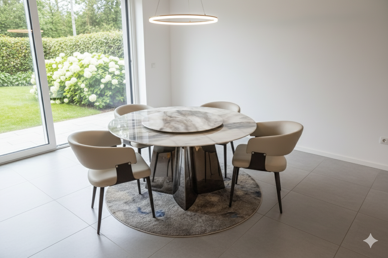 Naturally strong and heat-resistant, the marble is further reinforced with an epoxy layer to enhance its toughness. This added protection makes it resistant to scratches and everyday wear, safeguarding your table from frequent use and contact with cutlery.