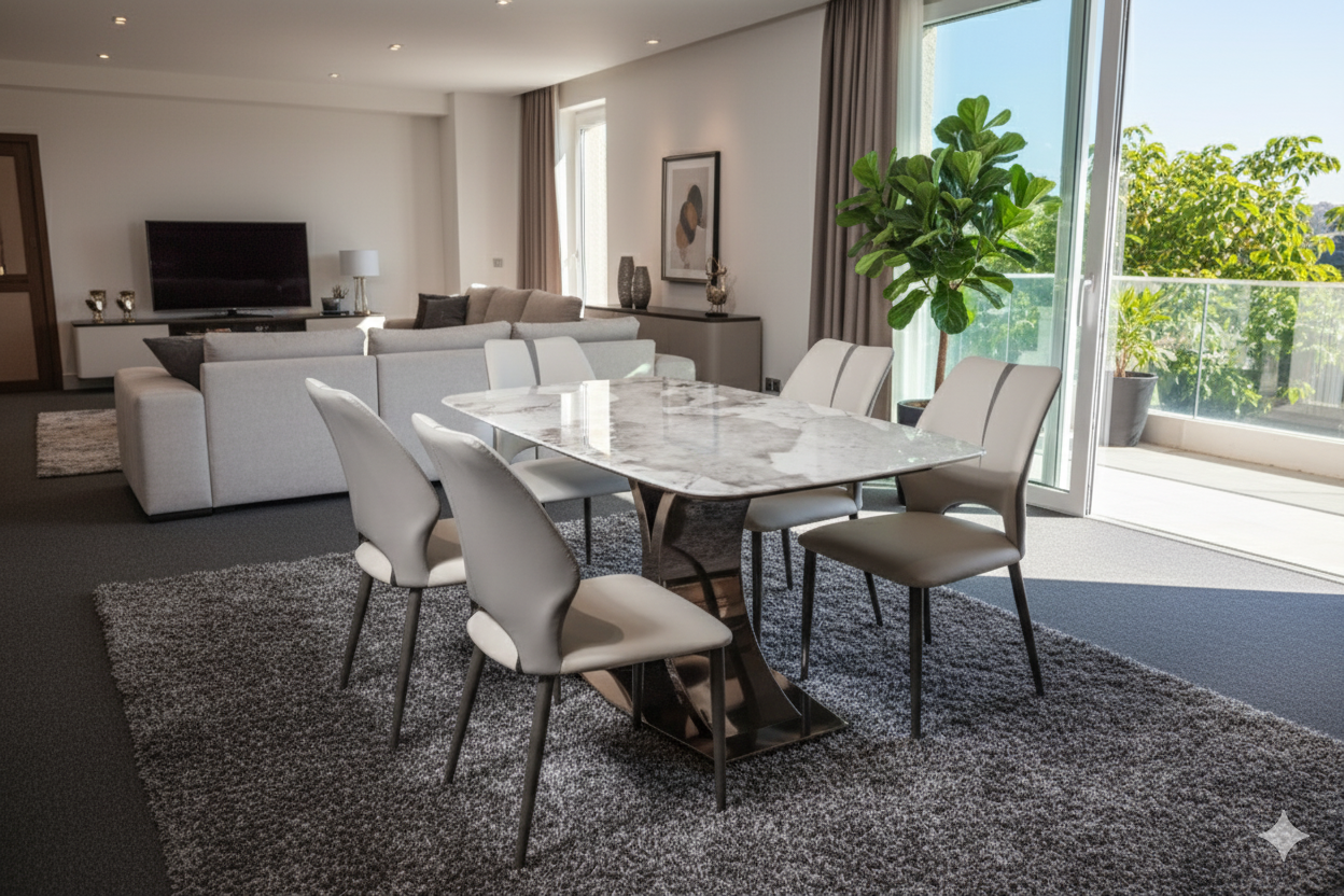 Naturally strong and heat-resistant, the marble is further reinforced with an epoxy layer to enhance its toughness. This added protection makes it resistant to scratches and everyday wear, safeguarding your table from frequent use and contact with cutlery.