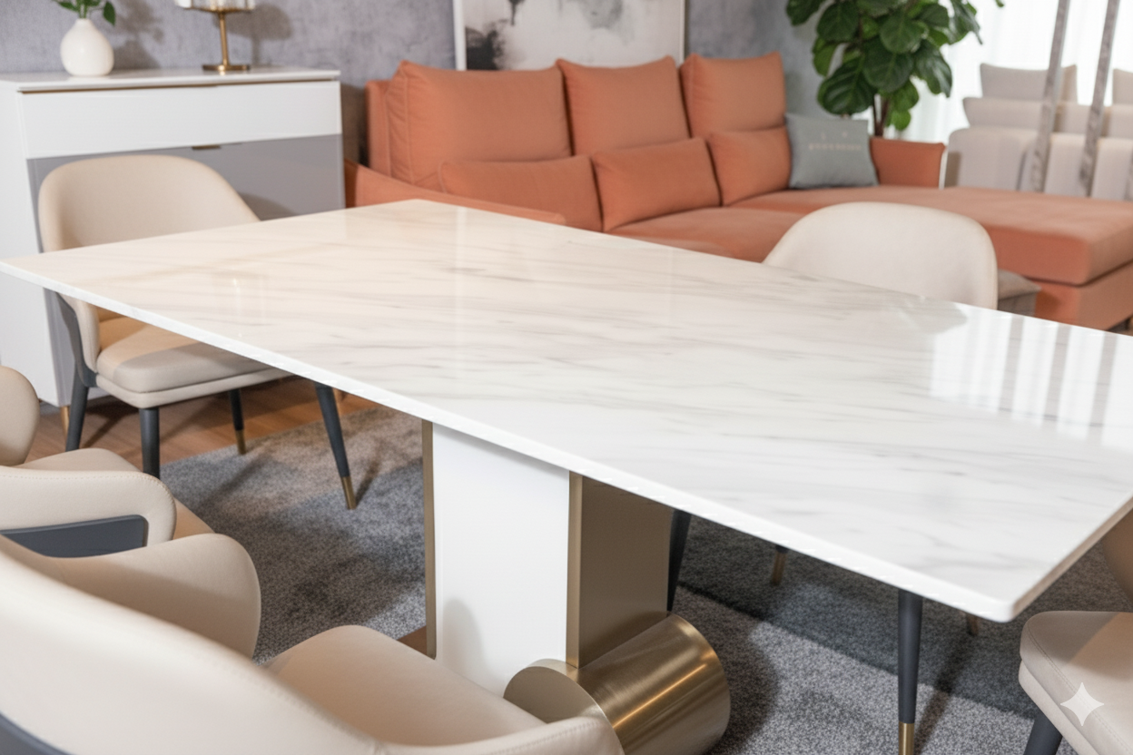 The epoxy coating forms a smooth, non-porous, and non-slip surface that effectively protects the marble from food stains and liquid spills — keeping your table looking pristine with minimal effort.