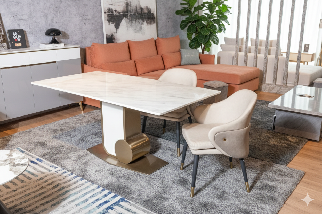 Naturally strong and heat-resistant, the marble is further reinforced with an epoxy layer to enhance its toughness. This added protection makes it resistant to scratches and everyday wear, safeguarding your table from frequent use and contact with cutlery.