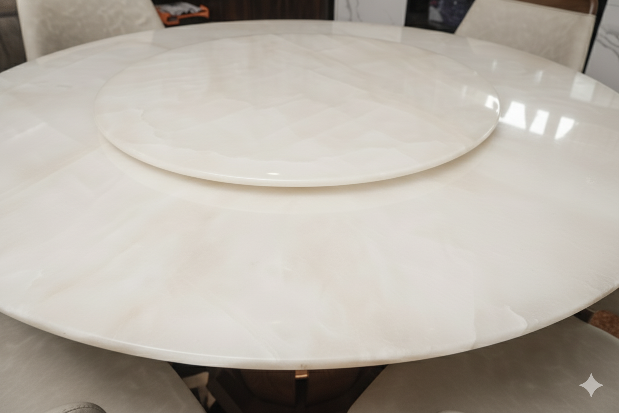 The epoxy coating forms a smooth, non-porous, and non-slip surface that effectively protects the luxury stone from food stains and liquid spills — keeping your table looking pristine with minimal effort.