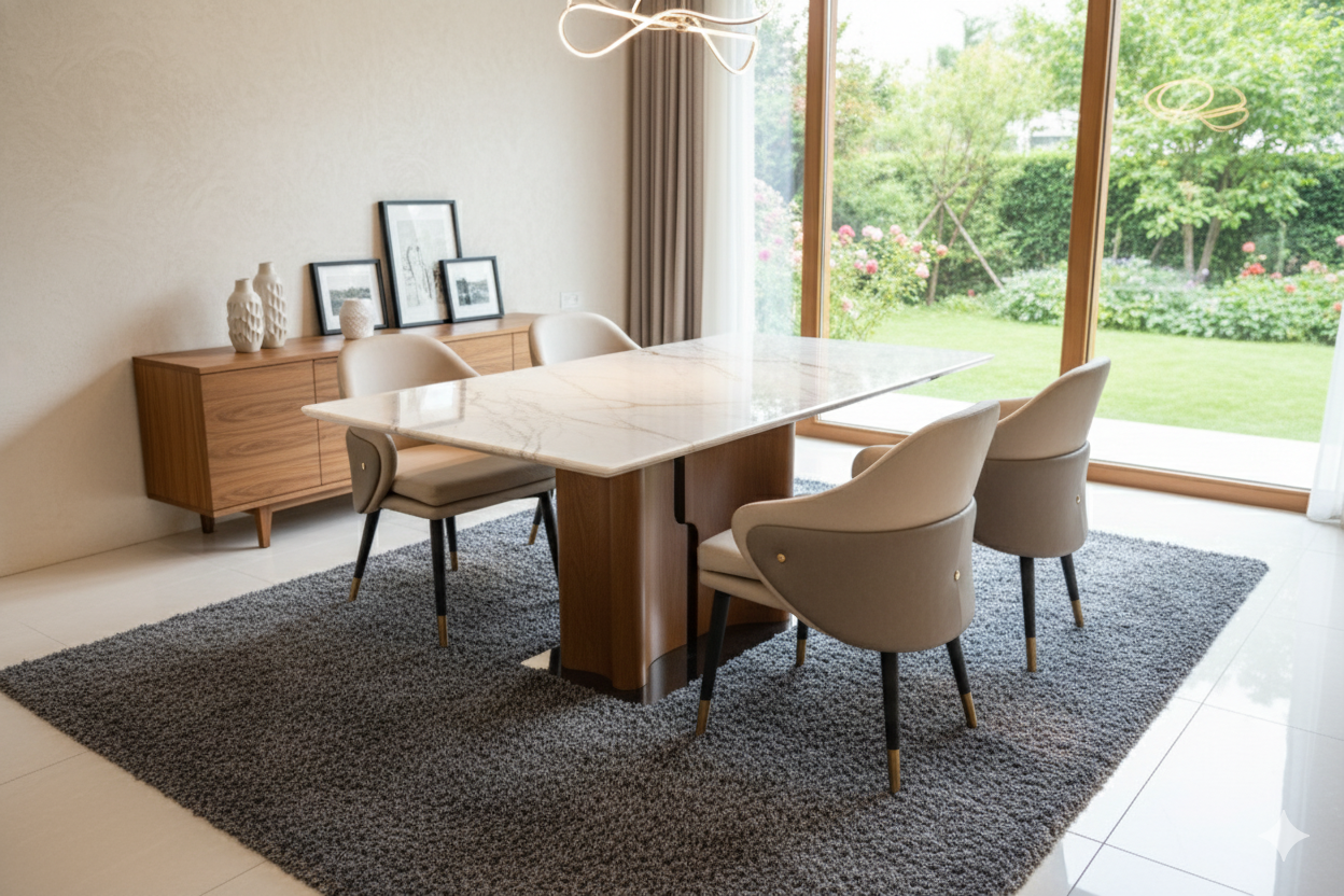 Naturally strong and heat-resistant, the luxury stone is further reinforced with an epoxy layer to enhance its toughness. This added protection makes it resistant to scratches and everyday wear, safeguarding your table from frequent use and contact with cutlery.