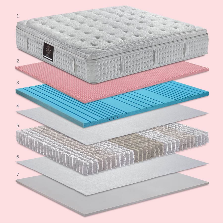 - Titanium springs 7 zones with containment Support Flex System.