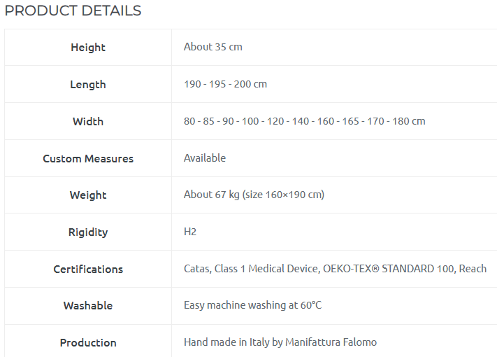 Mattress technical specifications