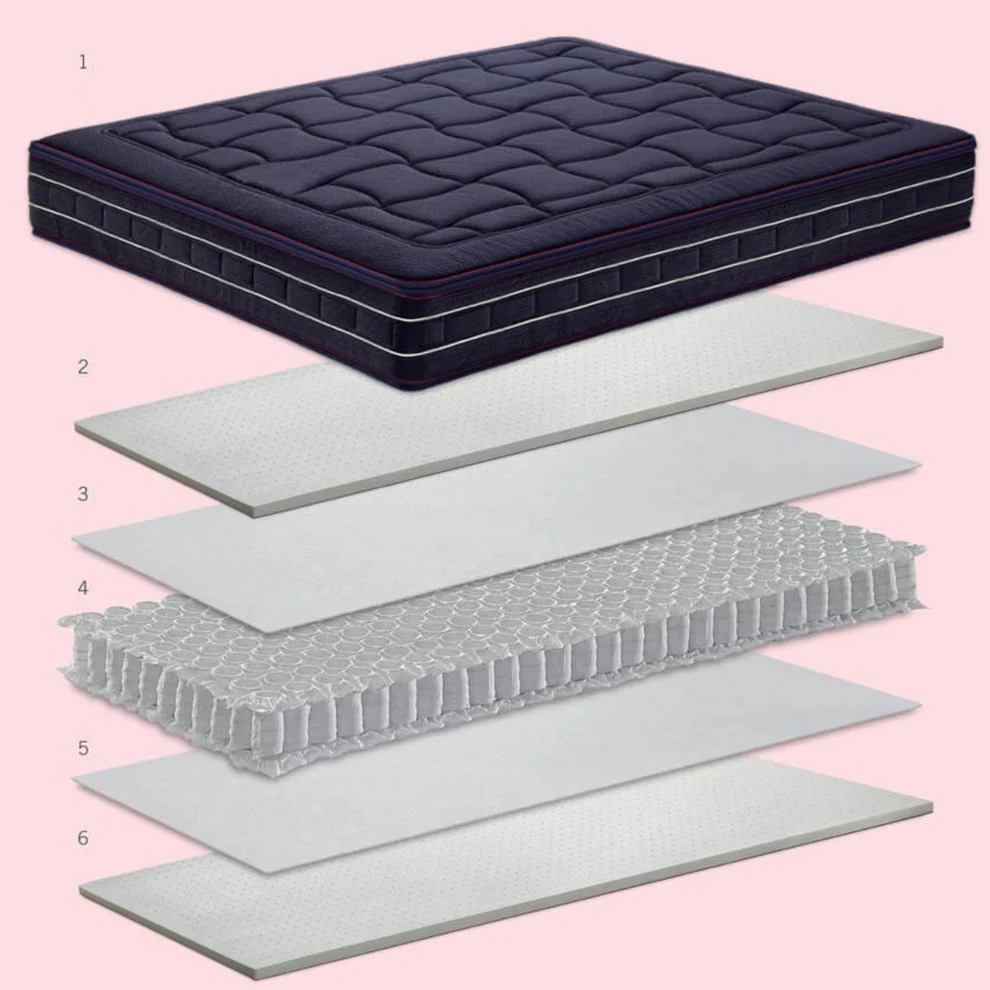 3 centimetre thick micro-perforated latex and jute plane which guarantees exceptional elasticity and breathability.