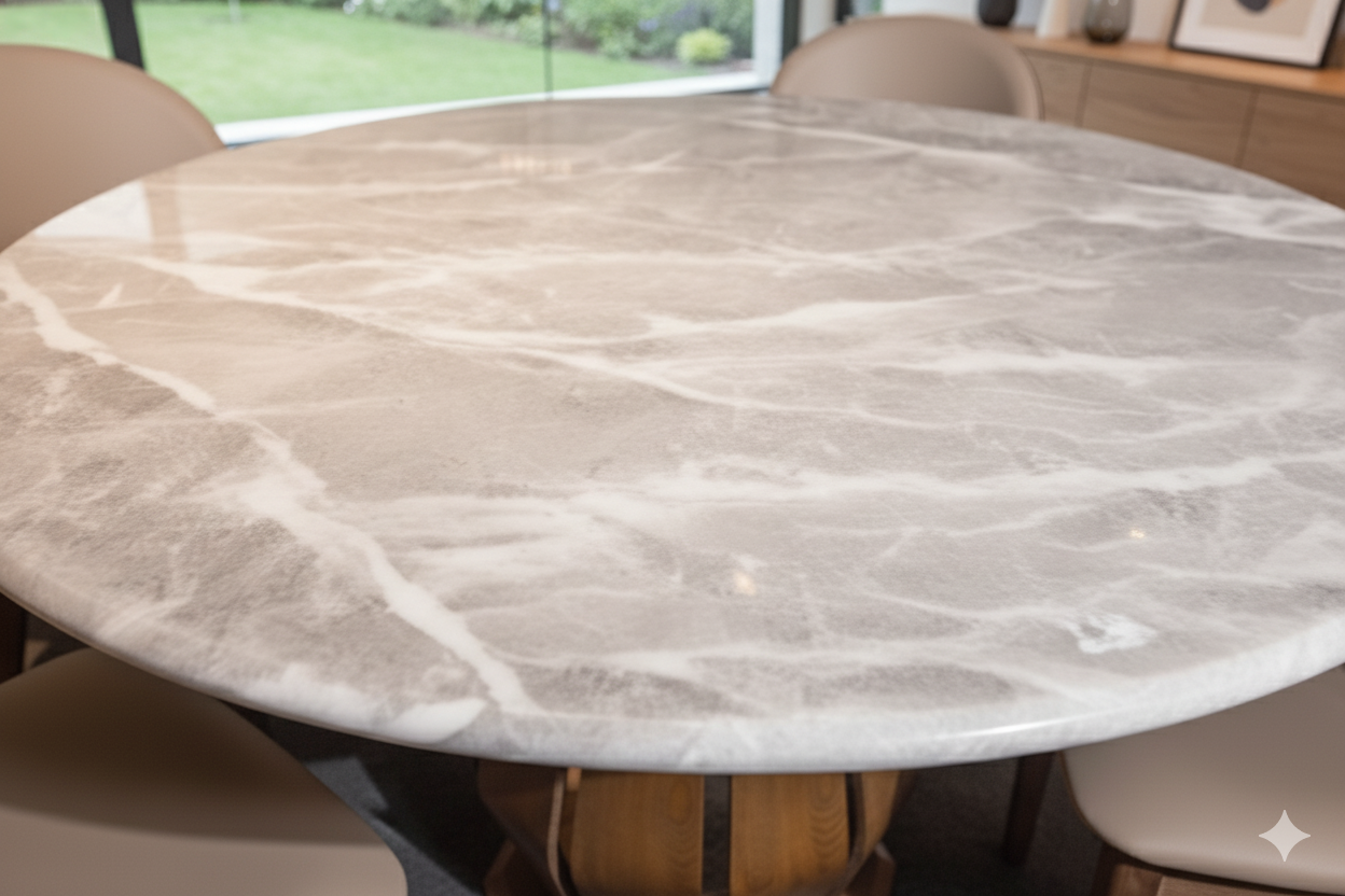 The epoxy coating forms a smooth, non-porous, and non-slip surface that effectively protects the marble from food stains and liquid spills — keeping your table looking pristine with minimal effort.