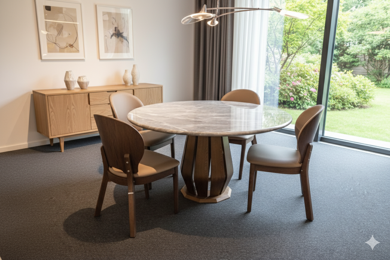 Naturally strong and heat-resistant, the marble is further reinforced with an epoxy layer to enhance its toughness. This added protection makes it resistant to scratches and everyday wear, safeguarding your table from frequent use and contact with cutlery.